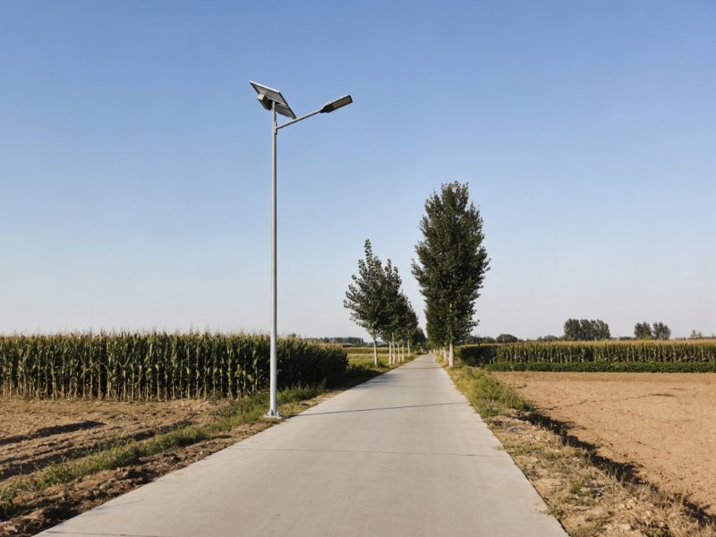 For rural roads, especially new ones that are about 5 meters wide, streetlights that are about 6 meters tall are usually preferred. Since there isn’t much traffic on rural roads, we usually use a single-sided alternating lighting setup and suggest that solar streetlights be spaced 15–20 meters apart.