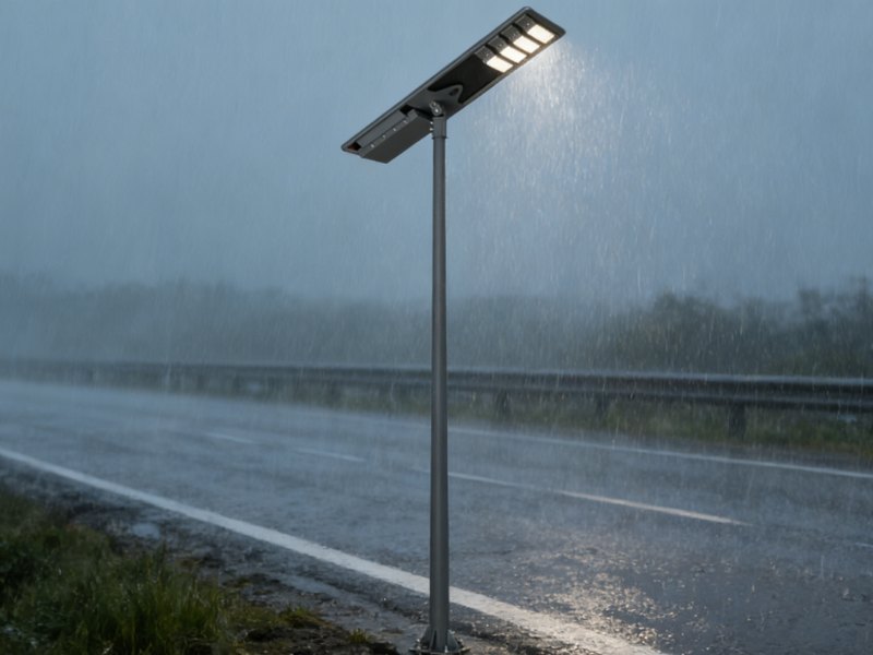 Solar street lights are typically installed outdoors year-round, where exposure to intense sunlight, heavy rain, typhoons, and frost is the norm. Outdoor IP65 solar street light is sufficient for standard urban and rural roads, handling everyday rainfall without issue; Outdoor IP66 solar street light is better suited for coastal areas, mountainous regions, and areas prone to heavy rainfall or typhoons, as it can withstand torrential downpours and corrosive saltwater mist, thereby preventing moisture-induced corrosion of circuit boards and short circuits that could cause the light source to fail. A lot of cheap solar-powered street lights say they are IP67 or IP68 rated, but they aren’t and they break after only a few months of use because water gets in. Real solar streetlights have clear labels on their lamp heads, battery compartments, and controller boxes that show how well they protect against damage. They also have sealing rings and waterproof connectors that keep them safe.